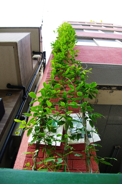現在生育中の弊社玄関前のアイラトビカズラは1年半で15mまで登攀している。